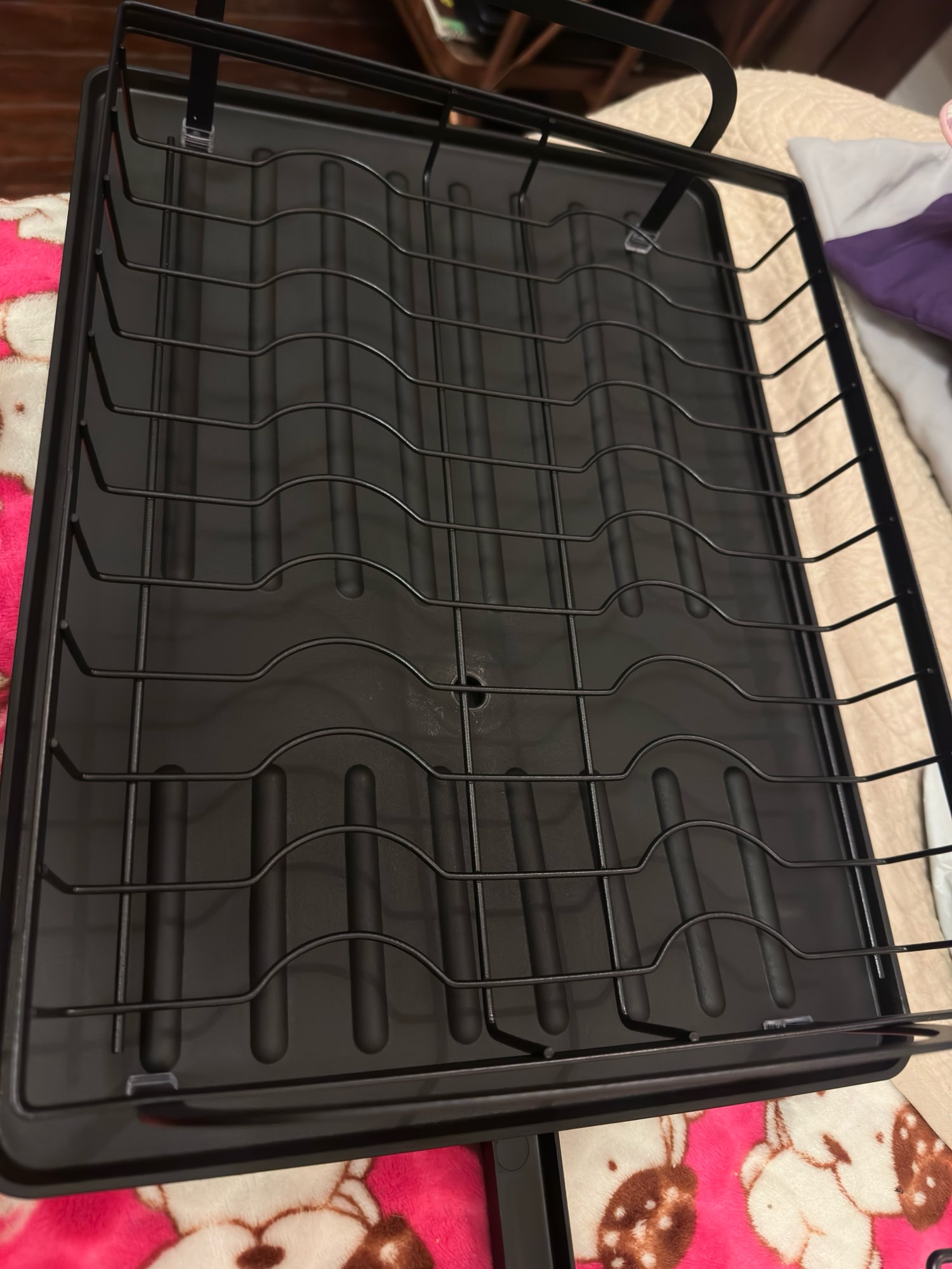 Here’s the translation into English: Very spacious dish rack. Holds a lot of dishes. There is a drain for excess water from the bottom tray (you can choose the drainage direction). The cutting board holder is a bit poorly designed and often comes off, but it’s not a big deal. We’re satisfied. Thanks.