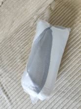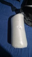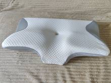 Подушка приехала смотанная в узкий пакет. Не под вакуумом, а просто заклеен скотчем. Когда достала ее, то она вроде нормально приняла свою форму, но не такая объемная как на фото странички...гораздо более плоская. Попробовала полежать - по ощущениям удобно. Нужно пробовать спать на ней для полного понимания. Но в целом впечатления очень хорошие:)