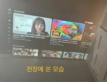 정품을 써보지 않는 사람에게는 10점만점에 9.5이상에 해당할만큼 훌륭한 제품.(정품을 써보았다면 10점인줄 알았던 만족도가 20이 됨) 우선 화질에 너무 놀랐고, 소음은 조금 큽니다. 옛날 노트북 오래 사용했을 때 나는 소음보다 조금 큼. 소재도 저렴한 플라스틱이긴 합니다. 디자인은 정품 따라한 만큼 무난하고 깔끔해요. ✔️사용법 1. 무선이 아니므로 충전기를 연결한다. 2. 전원을 켠다. 3. 프로젝터 앞쪽에 장력(?)조절기가 있는데, 투사하는 위치에 따라 조절하면 초점을 맞출 수 있어요. 처음엔 계속 흐려서 고장난줄 4.리모컨 작동 안해서 이것도 고장난줄 알았는데 얇은건전지2개 넣어야 작동함 5. 넷플릭스 클릭하면 와이파이 연결하라고 뜰텐데 클릭해서 연결(만약 계속 안된다면 USB단자에 유무선 마우스 연결해서 사용가능) 6. 그럼 이제 세부기능은 천천히 파악하고 당장 사용 가능함~