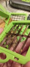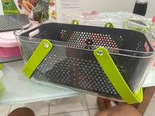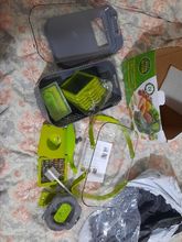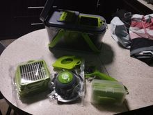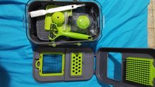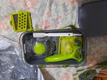 Simplesmente apaixonada! Veio com bastante acessórios. Parece ser um plástico resistente! Tem cortadores, raladores, senador de clara e gema, descascador, escova de limpeza, Garfinho de limpeza. Serve para lavar frutas e verduras. Muito útil. Ainda não testei os cortes, mas parece ser bom!