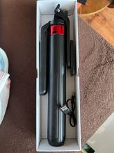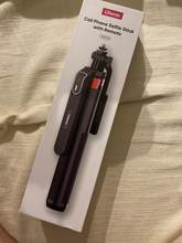 Штатив пришел в хорошей упаковке. В комплекте есть пульт и шнур для его зарядки. Все работает, по Bluetooth подключается к телефону, можно делать снимки. Инструкция есть на английском языке.